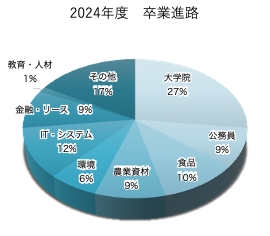 農林水産省(総合職、一般職)、経済産業省、警察庁、国税庁(総合職)、林野庁、東京都、埼玉県(農業職)、千葉県(農業職)、神奈川県(農業職)、福島県(農業職)、山梨県(農業職)、日本植物防疫協会、残留農薬研究所など